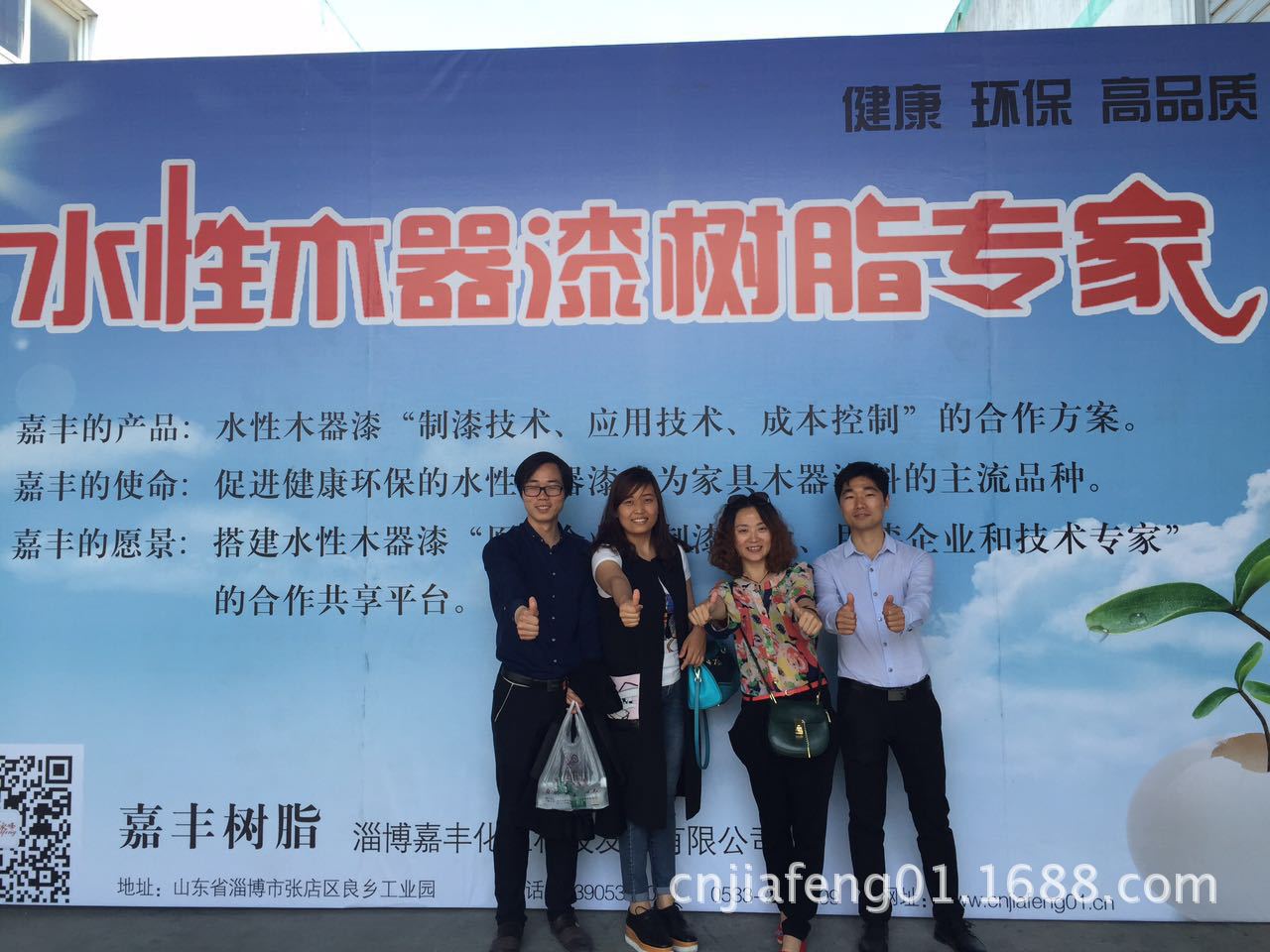 左起中华制漆连剑超、白玉兰家具沈总、淄博嘉丰树脂杨总合影留念